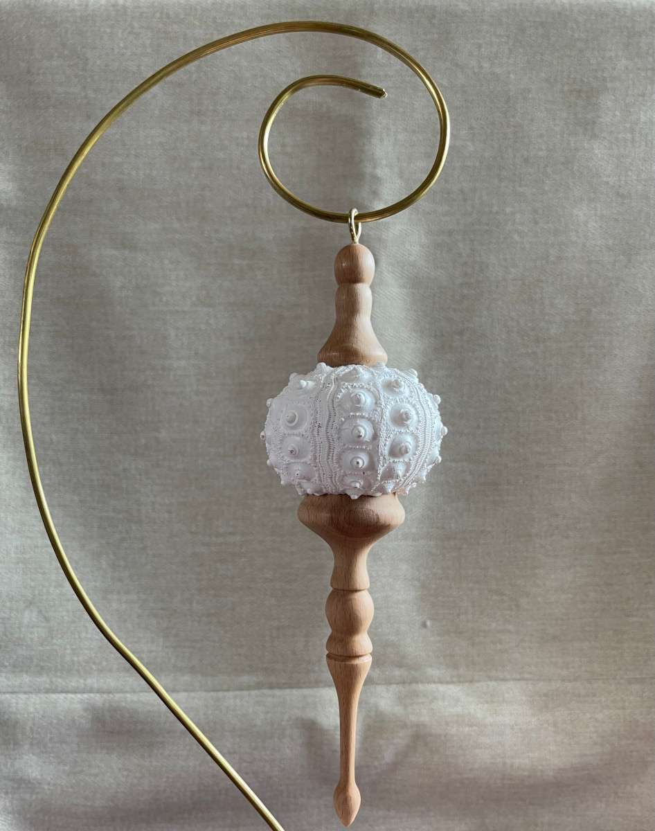 Decorative finial featuring a sea urchin, mounted on a starfish